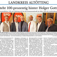 Altötting. Als erste Partei im Landkreis hat am Montag die SPD ihren Landratskandidaten nominiert. Und die Genossinnen und Genossen stehen zu 100 Prozent hinter Holger Gottschalk. Bei der geheimen Abstimmung im Rahmen der Versammlung beim Graminger Weißbräu votierten sämtliche anwesenden 42 Delegierten für den Altöttinger. Der Gymnasiallehrer appellierte, diesen Teamgeist im Wahlkampf aufrecht zu erhalten.